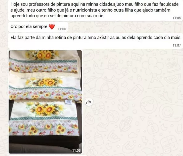 Assim como a aluna Aparecida, que pagou o curso inteiro só com as toalhas que pintou no primeiro módulo.